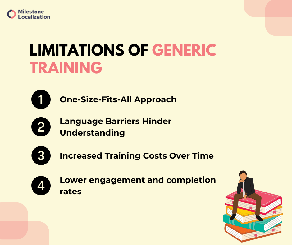 3. Increased training costs over time: Organizations that do not localize or customize their training often face higher expenses in the long run. These costs arise from repeated sessions, additional support, and corrective measures needed to fill persistent knowledge gaps.
